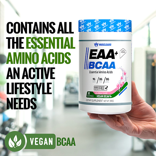 Muscle Add EAA+BCAA contains all the amino acids an active lifestyle needs, plus electrolytes.