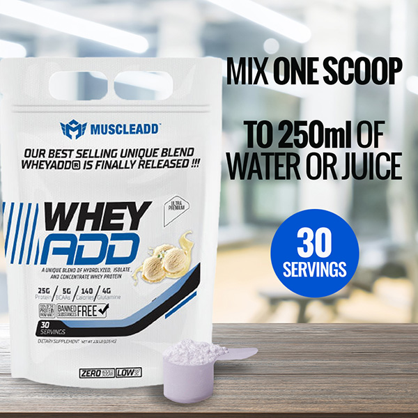 Take your fitness game to the next level and achieve the results you crave with MUSCLEADD™ WHEY ADD® 100% UNIQUELY FORMULATED BLEND.