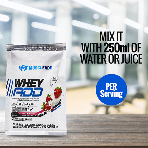WHEY ADD® 100% Whey Protein blend provides your body with a high-quality protein designed to build muscles and strength. Supported with Amino Acid, BCAA, And Glutamine to enhance muscle recovery.