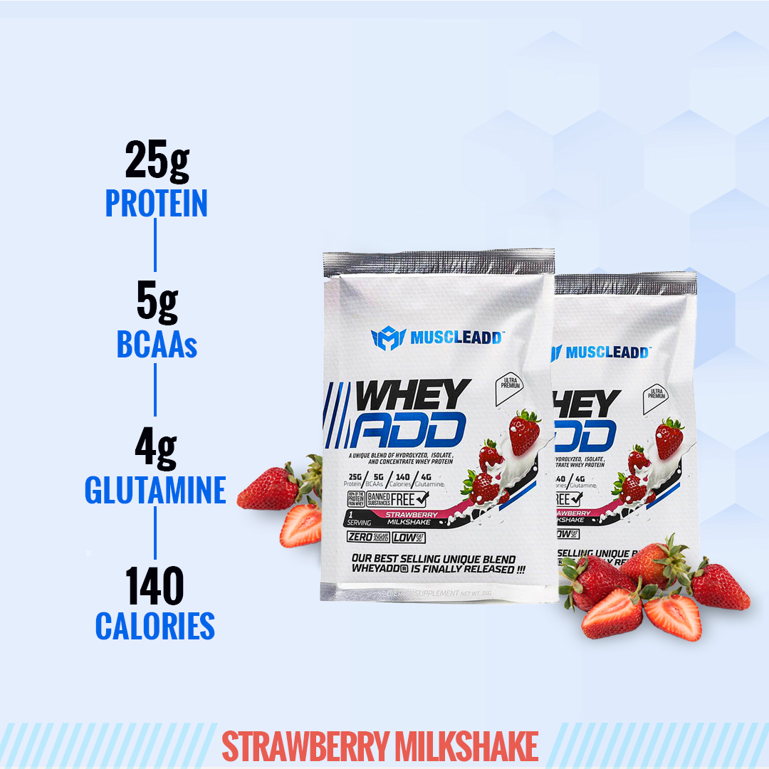 Take your fitness game to the next level and achieve the results you crave with MUSCLEADD™ WHEY ADD® 100% UNIQUELY FORMULATED BLEND.